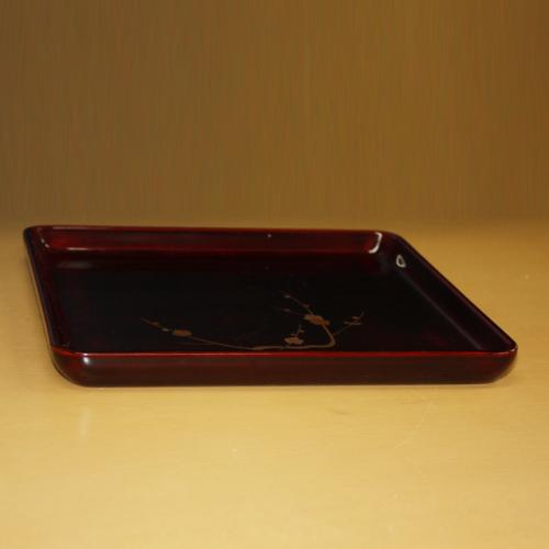 内面朱タメ色/外面黒色、梅の蒔絵仕上げ、輪島塗 角盆 (中) です。