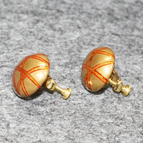 楕円形、朱色、金地線の蒔絵仕上げ、輪島塗 イヤリングです。