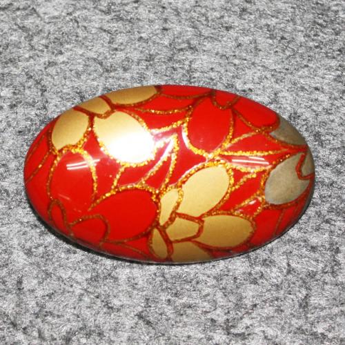 小判形、朱色、梨地、椿の蒔絵仕上げ、輪島塗ブローチです。