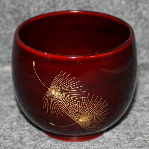 ここで沈金とは、細いノミで溝を彫った後に、金銀粉を埋め込む輪島独特の手法です。また、タメ色とは、タメ塗りに起因するもので、初めに朱色の漆を塗った上に、黒色の色粉を混合した朱合漆(透き漆)を塗って得られる手法です。この特徴は、出来上がった直後はかなり黒っぽい色ですが、時間経過と共に黒色が透けて、初めに塗った赤味を帯びて来ます。本品はコーヒー、日本茶等の他、日本酒などに好適です。同色の輪島塗ソーサーをご希望される場合は、当ホームページに別掲のソーサーからお選びください。