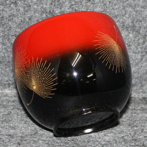 内朱/外朱 (上)・黒 (下) のグラデーション、飛花の沈金仕上げの輪島塗フリーカップです。