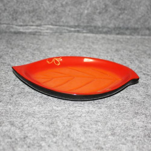 葉形、内外朱色、桜の蒔絵仕上げの輪島塗 銘々皿です。