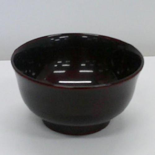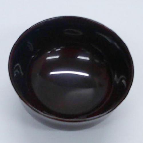 ここでタメ色とは、タメ塗りに起因するもので、初めに朱色の漆を塗った上に、黒色の色粉を混合した朱合漆 (透き漆) を塗って得られる手法です。この特徴は、出来上がった直後はかなり黒っぽい色ですが、時間経過と共に黒色が透けて、初めに塗った赤味を帯びて来ます。本品は大形なので、小鉢としても用いられています。